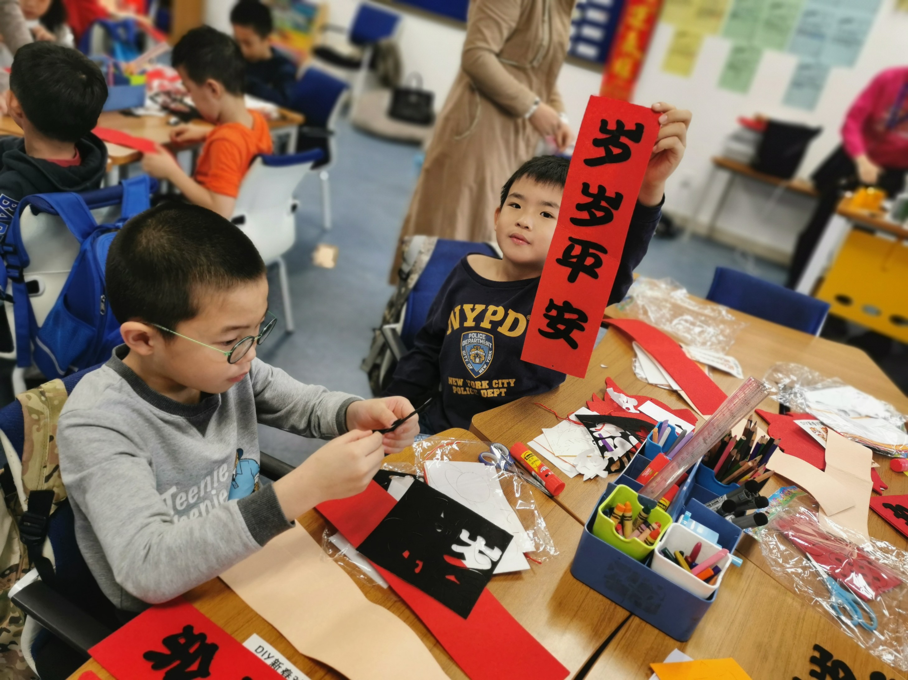 过年是中国传统文化中很重要的一部分。今年我们小学部为此携手家长组织了丰富多彩的班级活动:皮影戏、投壶、猜灯谜、写福字、制作灯笼和红包等。学生与家长的互动充满了欢声笑语,在此过程中同学们也学习了中国传统文化。