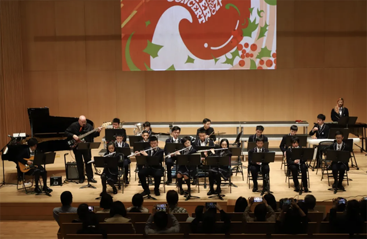 第一场演出在五年级学生们动人的尤克里里和竖笛演奏中拉开帷幕,随后的每个乐章都包含两首节日曲目。最后,在Ms. Oumei和Mr. DeLay的指挥下,152名学生同台演奏欢快的终曲《Joy to the World》,将全场演出推向高潮。