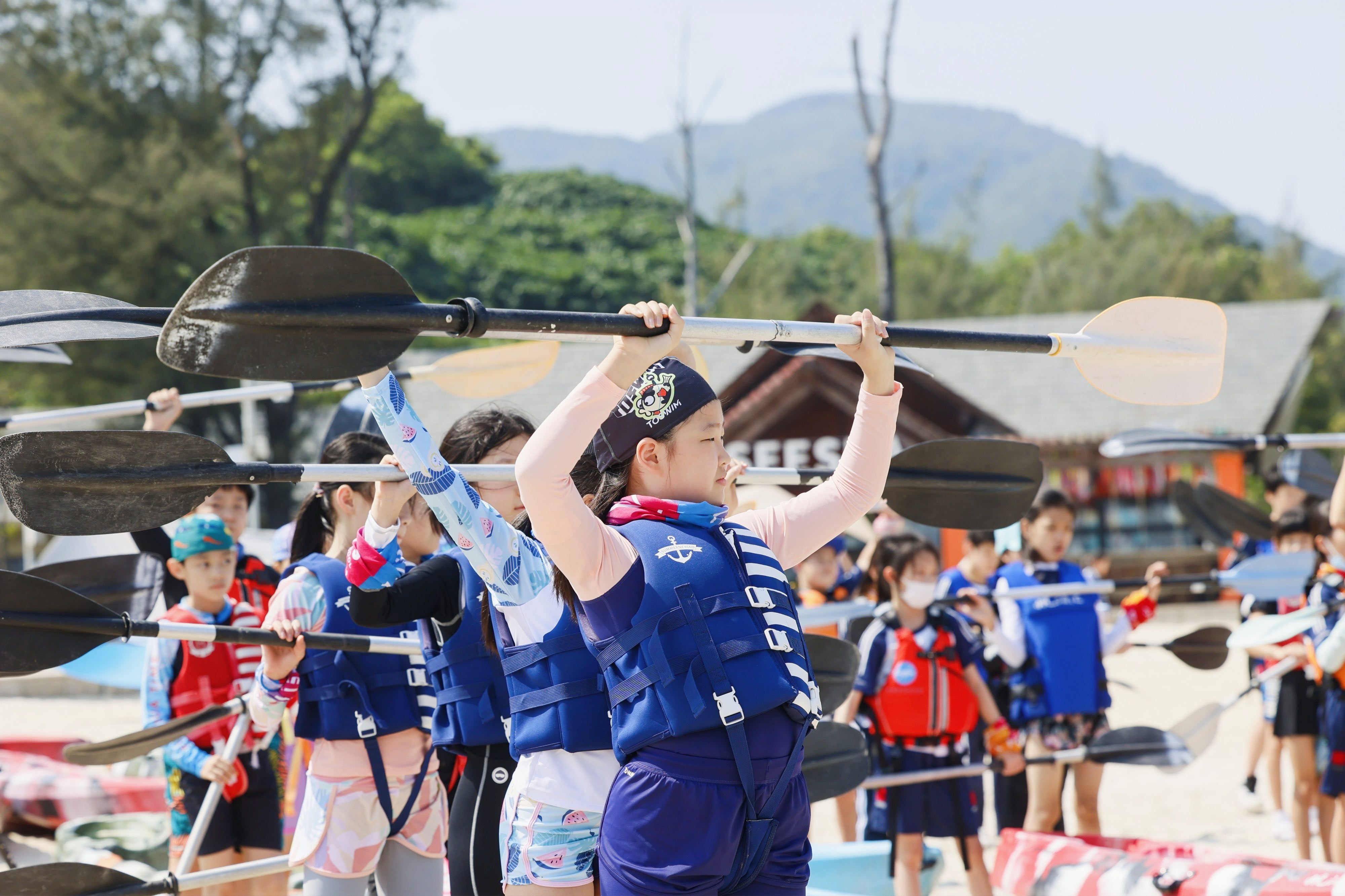 五年级学生们前往大鹏桔钓沙海滩,享受了轻松愉悦的户外时光。在本次秋游中,同学们在沙滩上玩沙滩排球、拔河,下海尽情畅游,还尝试了皮划艇运动。皮划艇是当天最受欢迎的项目之一,尽管有些同学是首次尝试,但他们很快就学会了划艇,并深深地爱上了这项运动。