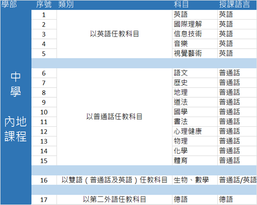 对于小学和初中阶段的学生,学校实行双轨制教学,即国家义务教育课程与香港课程并行不悖,旨在为学生提供全面的教育资源和多元的学习体验。