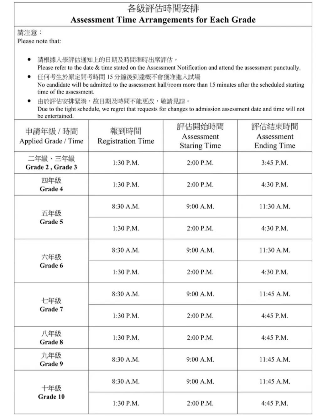 小二至中四:中文+英文+数学考试(每个科目约45分钟-1小时),不需要面试家长
