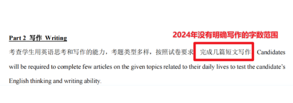 2023年的考纲有说明写作部分字数限制为50-150。深国交入学考试写作部分分为短评、书信写作、图表写作。而这三个部分未调整前各自有着不一样的写作字数限制。