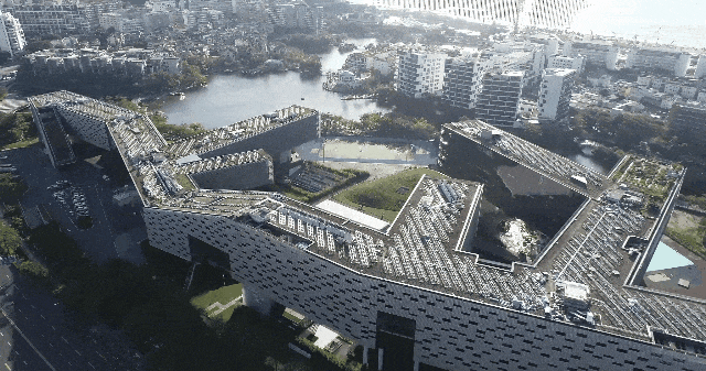 极具标志性的教学楼是由世界十大建筑师之一Steven Holl先生一手设计的,是一座极具现代感和设计感的大楼,被誉为“漂浮的地平线,躺着的摩天楼”。